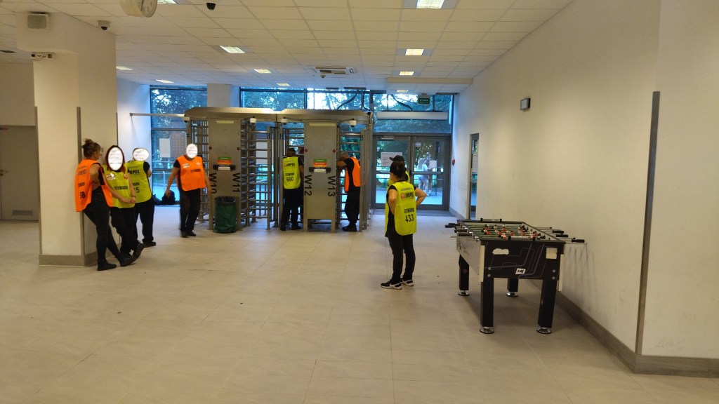Біля стадіону перед початком зустрічі не спостерігалося великої кількості як уболівальників, так і поліції. Вхід на трибуни зайняв всього дві хвилини (десь за годину до старту матчу), навіть не просили показати спідню білизну. Стадіон лише для футболу (тобто без бігових доріжок) та всі трибуни під дахом.