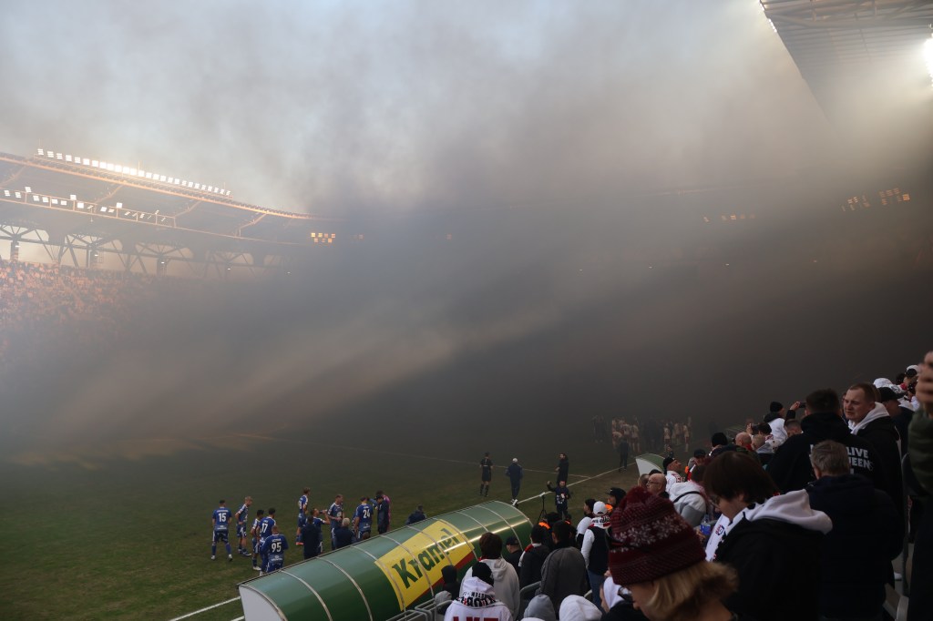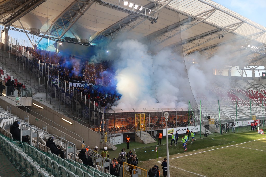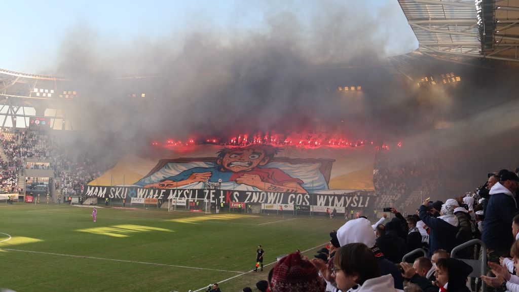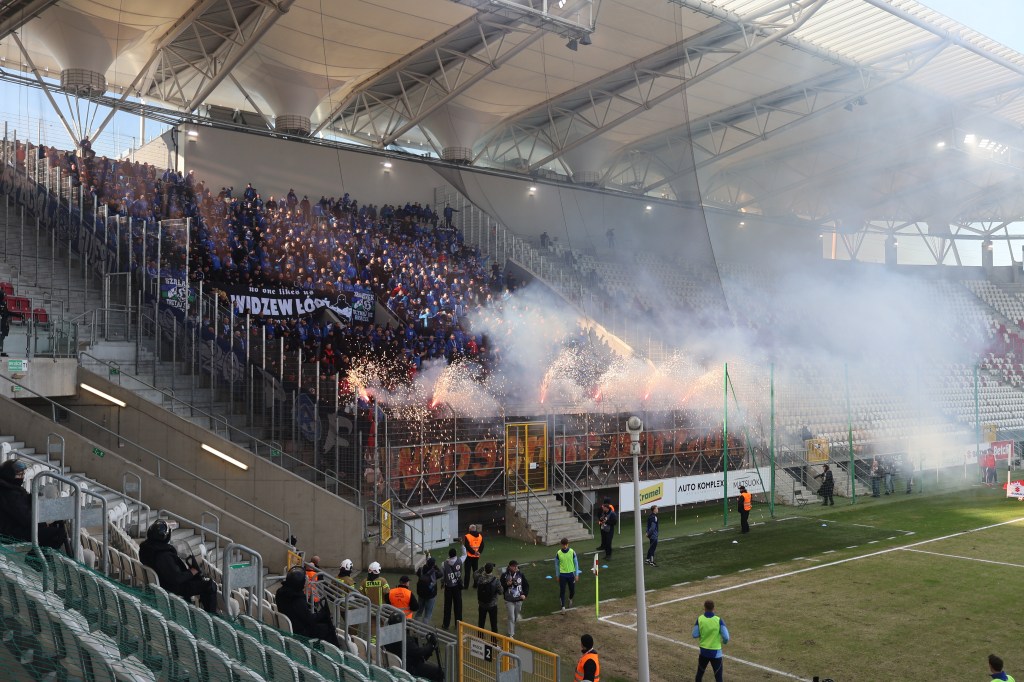 Гості з Хожува приїхали спеціальним поїздом десь за 1,5 годину до початку матчу. Майже весь матч співали та спалили трохи піротехніки. При цьому за піротехніку зі сторони ультрасів місцевого ЛКС суддя змушений був зупинити гру на декілька хвилин – чорний їдкий дим заповним майже ціле футбольне поле та 1\2 трибун.